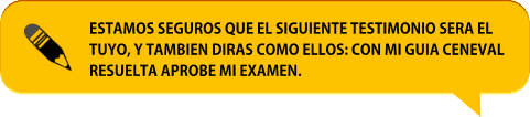 "Compré la guía, me puse a estudiarla y pase mi examen con una alta puntuación, gracias cenevalrespuestas.com por facilitarme mi estudio, los recomendare ampliamente".